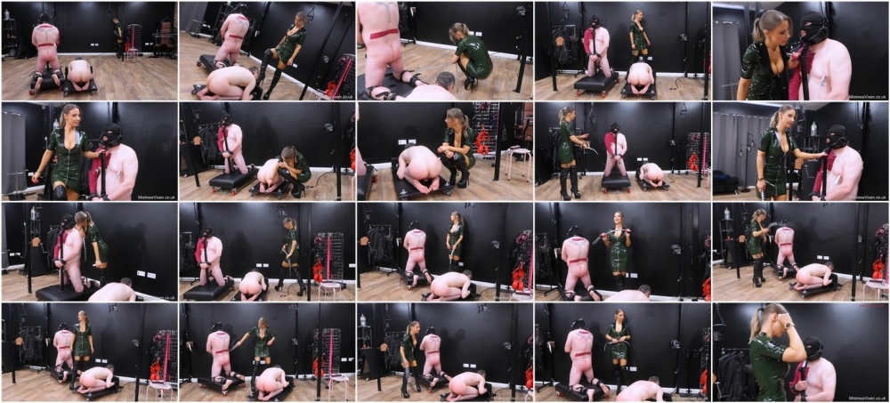 This is a terrific clip. Mistress loves these new trolleys she has, one has stocks attached, and a slave restrained in them by his wrists, bent into a low kneeling position. The other slave is made to kneel up against a steel pole to which is head and wrists are attached, both unable to move.Mistress enjoys how she can wheel them around into any position she sees fit. Early in the clip the kneeling slave has savage crocodile clips in his nipples which Mistress attempts to whip off, she can get to the nipples of the kneeling slave, but can get to his feet and uses her pin wheel on this with great enthusiasm! There is lots of wonderful whip action, some terrific view of Mistress Vixen in thigh boots and a stunning latex dress. Once satisfied Mistress has the slaves kiss her whip hand, it has worked hard, they will be left as they are, for her amusement in the near future.