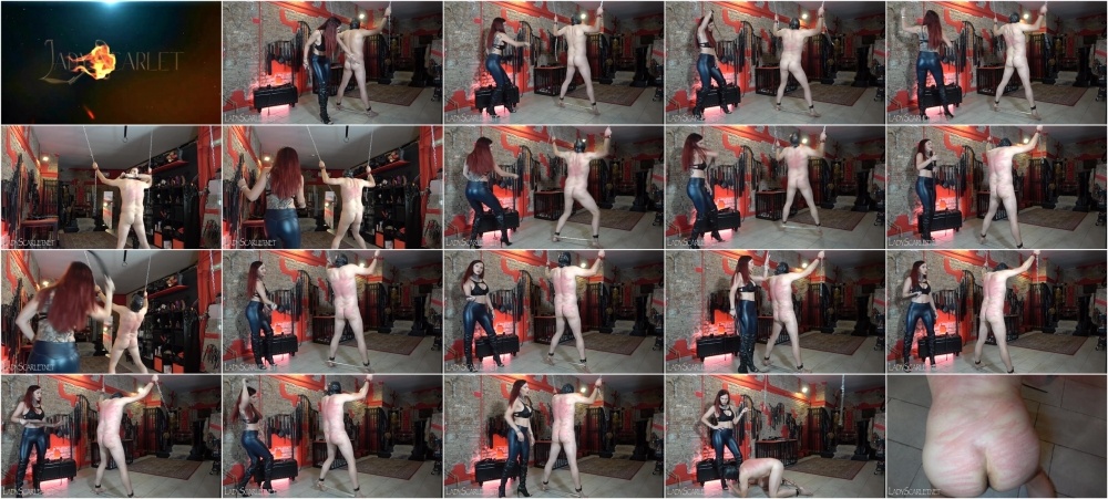 ITALIAN LANGUAGEToday I can't wait to get started with this slave. I've chained his hands and ankles to a spreader bar and he's wearing a leather mask and a ball gag. His back is too white, so I've decided to use my two favourite whips to mark it properly. Right from the start, the blows are sharp and decisive, hitting him from every position. He cannot defend himself and can only hope for my mercy... The intensity of the blows increases and his back is covered in red stripes. I decide to switch to the other whip and hit him even harder. He cannot stay still, his suffering grows with each blow and it almost seems as if he is crying. Before granting him his well-deserved rest, I feel the need to give him the last 15 strokes. They are really hard and I am enjoying myself so much that I decide to give him another 15 with the first whip. After these last strokes, hard and fast, I decide to untie him and grant him the privilege of kissing my boots... Now his back is red, just the way I like it! SERVO DELLA MIA FRUSTAOggi non vedo l'ora di iniziare con questo schiavo. Gli ho incatenato le mani e le caviglie a una barra divaricatrice e lui indossa una maschera di pelle ed una ball gag. La sua schiena è troppo bianca, quindi ho deciso di usare le mie due fruste preferite per segnarla come si deve. Fin dall'inizio, i colpi sono secchi e decisi, lo colpiscono da ogni posizione. Non può difendersi e può solo sperare nella mia pietà... L'intensità dei colpi aumenta e la sua schiena è ricoperta di strisce rosse. Decido di passare all'altra frusta e di colpirlo ancora più forte. Non riesce a stare fermo, la sua sofferenza cresce ad ogni colpo e sembra quasi che stia piangendo. Prima di concedergli il meritato riposo, sento il bisogno di dargli gli ultimi 15 colpi. Sono davvero forti e mi sto divertendo così tanto che decido di dargliene altri 15 con la prima frusta. Dopo questi ultimi colpi, forti e veloci, decido di slegarlo e di concedergli il privilegio di baciare i miei stivali... Ora la sua schiena è rssa come piace a me! MOBILE VERSIONSimilarLADY SCARLET - SHINY WHIPPING (extreme whipping) hd