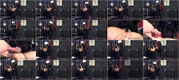I simply adore completely whorifying men, especially when they’re large and strong like this slut. One look at my divine crystal covered Zanotti 7 plus inch peep toe wedges, sheer hose and shiny black latex smothered body is really all that’s needed to reduce these types to the simpering little fuck sluts that they truly are. Making them wear sheer thigh high stockings and impossibly high heels is just all the more fun for me, but it also reinforces their new status in life as my man-whore. I strung this bitch up in the swing and had fun with it for several hours the other night. First it got fucked deep with my extra long hand held dick and then I plunged my raging hard strap-on into “my” pussy hole. The slut was so hard for my hard-on and long nails it could barely control its whimpering, moaning and dripping. When I had enough of that, I worked its hole over with my electric dildo. I love to hear it yelp when I shock that ultra sensitive skin around its fuck hole or plunge the electrically charged dick deep inside my whore. I know the slut loves it, though… this is what it lives for!