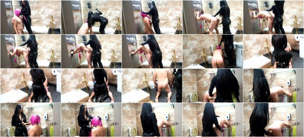 Cleaning sub fucked hard in bathroom - Strap On