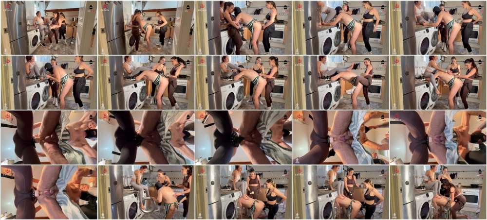 MissErinia - Three way gang bang of Mistresses on the slave in the kitchen