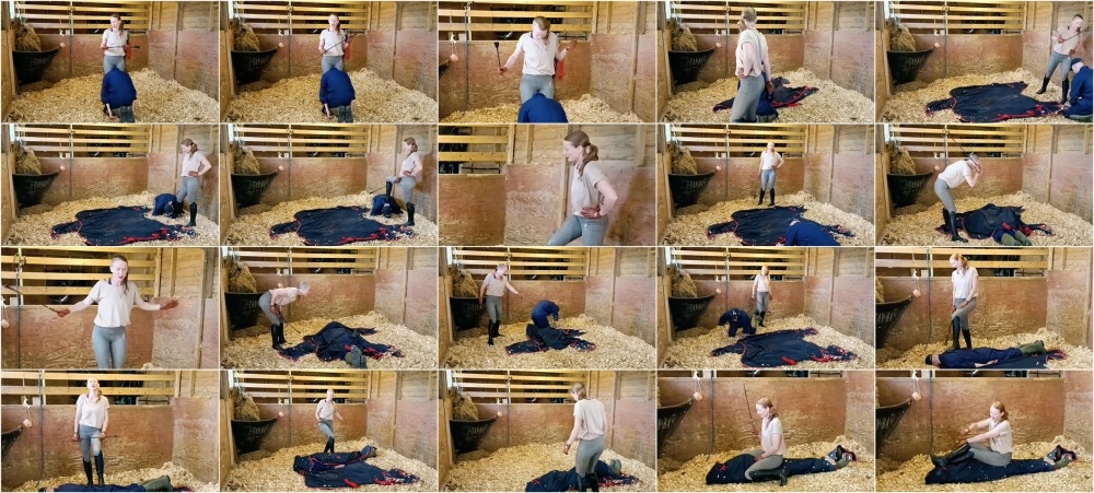 Madam M has a very busy household and the stables are a wonderful escape — but not for the stable boy. For him, that tranquillity often becomes a place of discipline. Whipped to heel on his hands and knees, he is driven forward like a of burden. Each command is punctuated by the sting of the crop, snapping against his flesh, driving him forward. When he falters, Madam’s boot lands hard — sharp kicks that jolt him back to obedience.